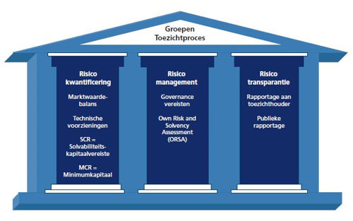 De Solvency-wetgeving wordt gekenmerkt door drie pilaren. In de eerste zitten de kwantitatieve kapitaaleisen. De tweede heeft betrekking op risicomanagement, governance en de ORSA (Own Risk and Solvency Assessment) en in de derde is de rapportage ondergebracht.